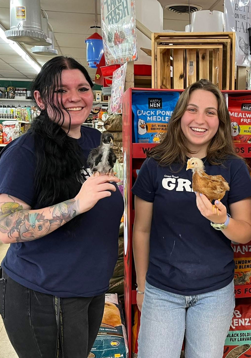 We have feed & treats, nesting boxes & egg boxes, waterers and feeders of all sizes. We even have chicks most of the year as well!