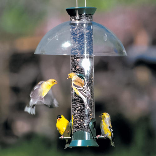 The Seattle Rain Guard will reliably protect birdseed and birds from the elements.
