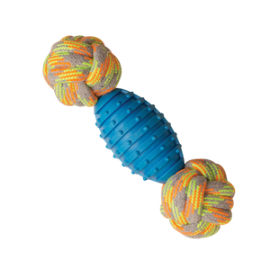 Enrich your pups' playtime with this multi-textured toy, made of tightly braided cotton rope featuring two knots and a rubber center. Knot Yours makes a fun chew toy and is great for a game of fetch! Available in an assortment of 3 fun colors.